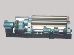 | 三輥對稱式,上輥在兩下輥中央對稱位置作垂直升降運動,通過絲桿絲母蝸桿傳動而獲得兩下輥作互轉運動,通過減速機的輸出齒輪與下輥齒輪嚙合,為卷制板材提供扭矩。 |